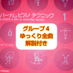 - バーナムピアノテクニック1よりグループ4全曲ゆっくり演奏練習ポイント解説付きグループ4に入ると音域も音も難しくなり、お子さんが一人で練習するのは大変になってきます。 ゆっくり演奏して解説… 続きを読む: バーナムピアノテクニック1よりグループ4全曲ゆっくり演奏練習ポイント解説付き